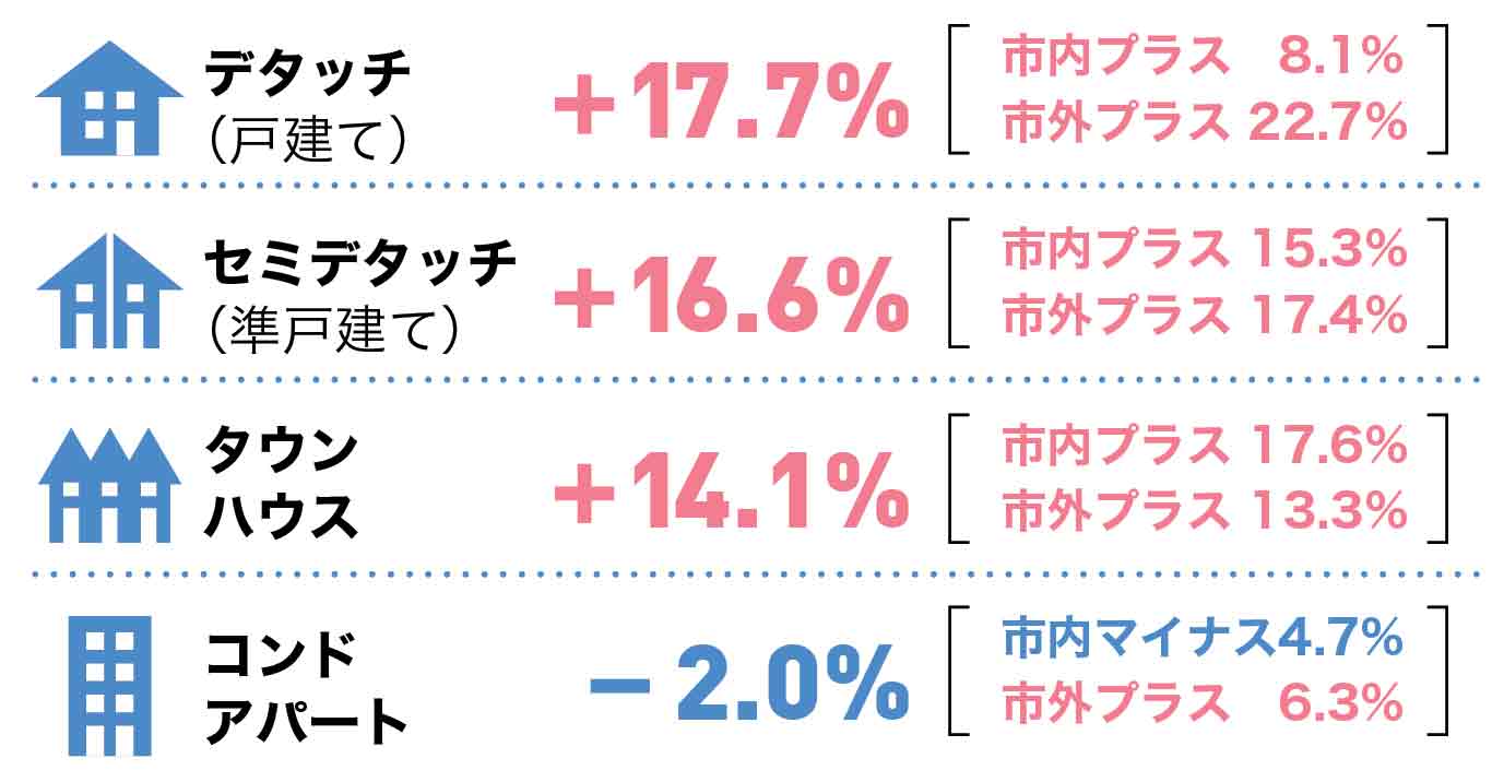 コロナの影響で不動産バブルが弾けると囁かれたが、 全物件タイプの平均価格は13.5%の上昇|家を買いたい!数字で解説トロント不動産マーケット