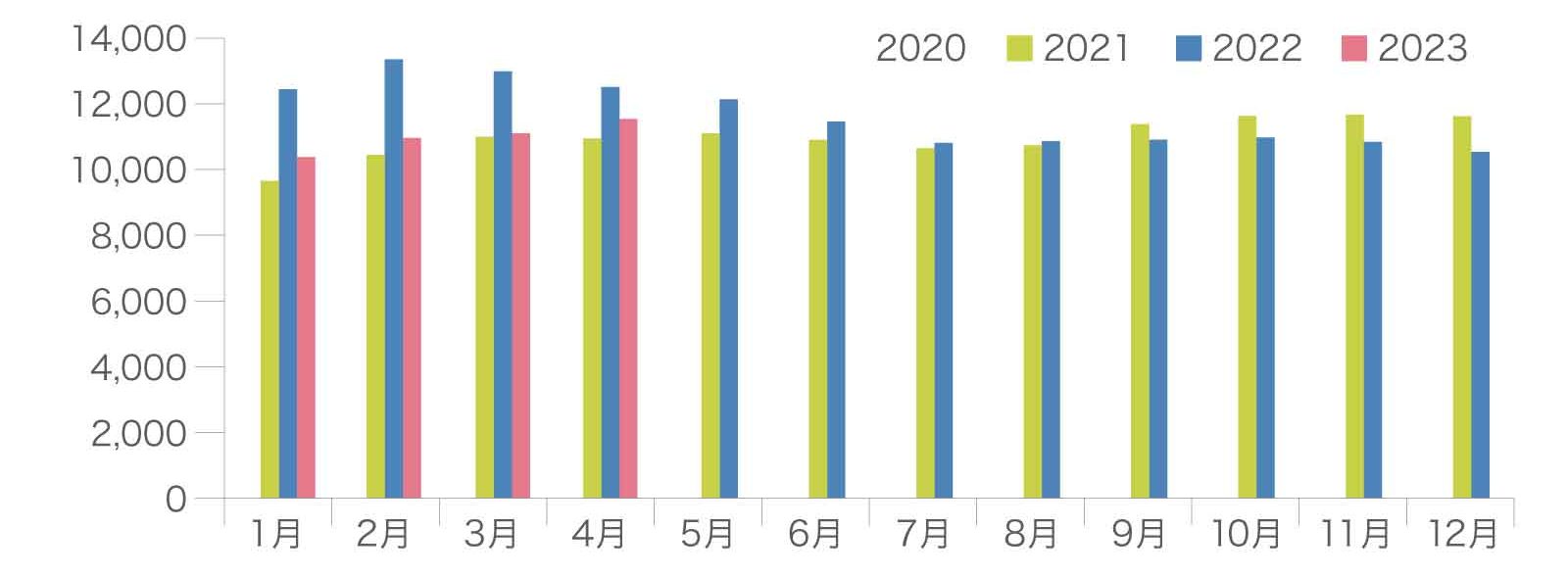2023年4月のTREB全域・全物件タイプの総取引数は7,531件で、昨年同月の7,940件からマイナス5.2%の減少でした。マイナスとなったもののここ最近と比べると確実に取り引き数は増加傾向にあり、マーケットは急速に復調しているように見えます。