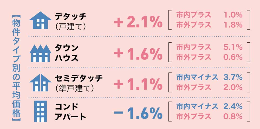 全物件タイプ別の平均価格は104万994ドルで、2024年同月の102万5226ドルからプラス1.5%の微増。新規リスティング数はプラス48.6%、有効リスティング数はプラス70.2%と大きく増加しています。