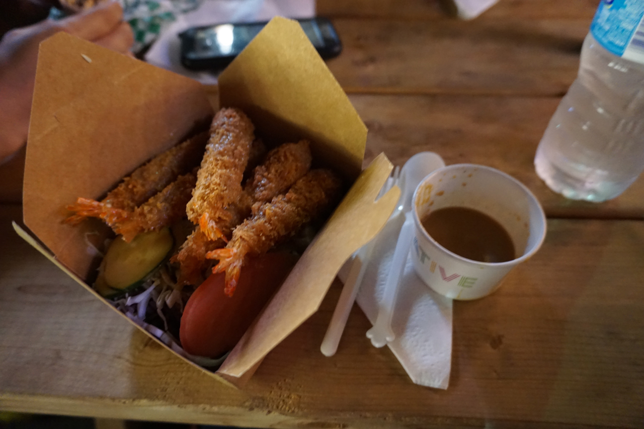 ということで、日本食の屋台でエビフライカレーを注文。